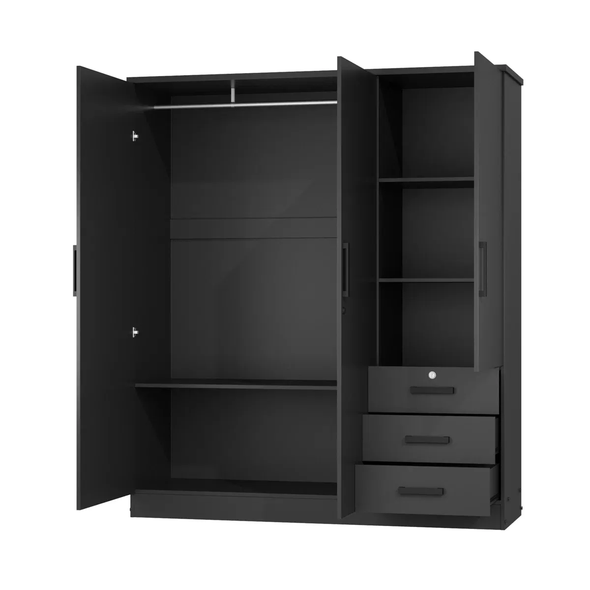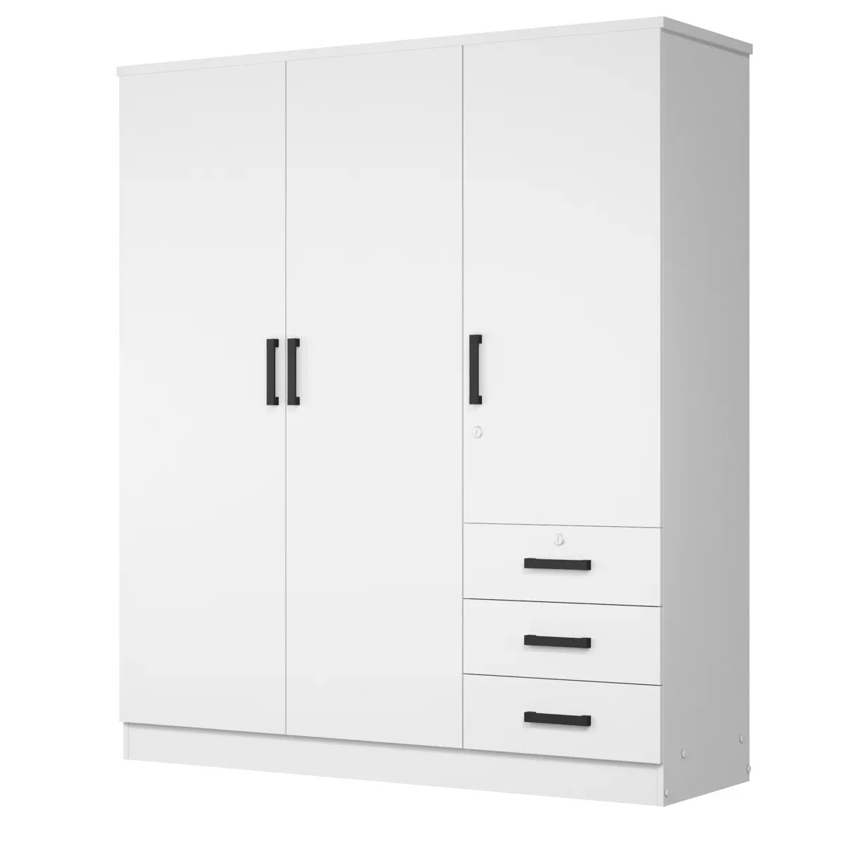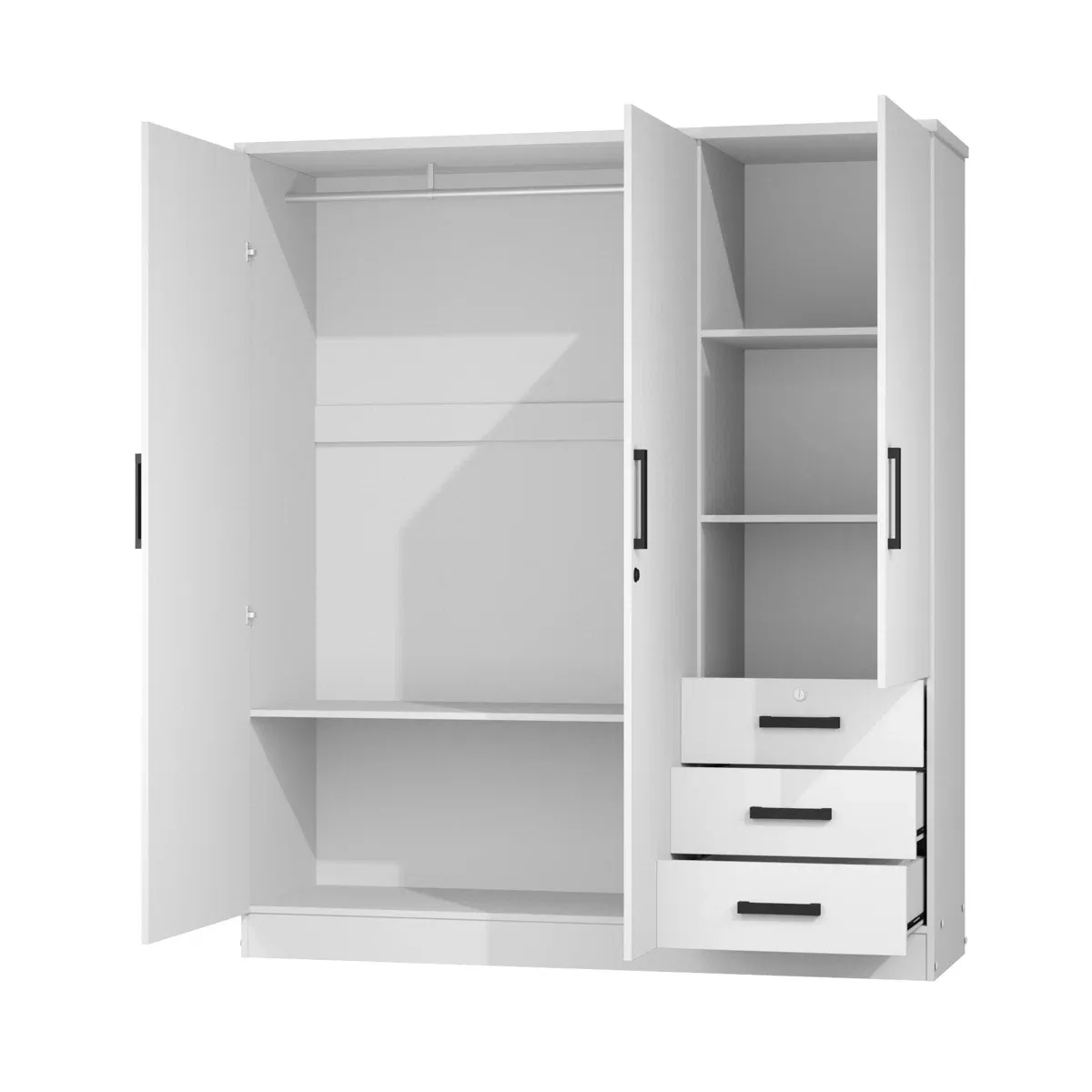 61″Wide 3-Door Wardrobe for Hanging With 3 Drawers & Shelves