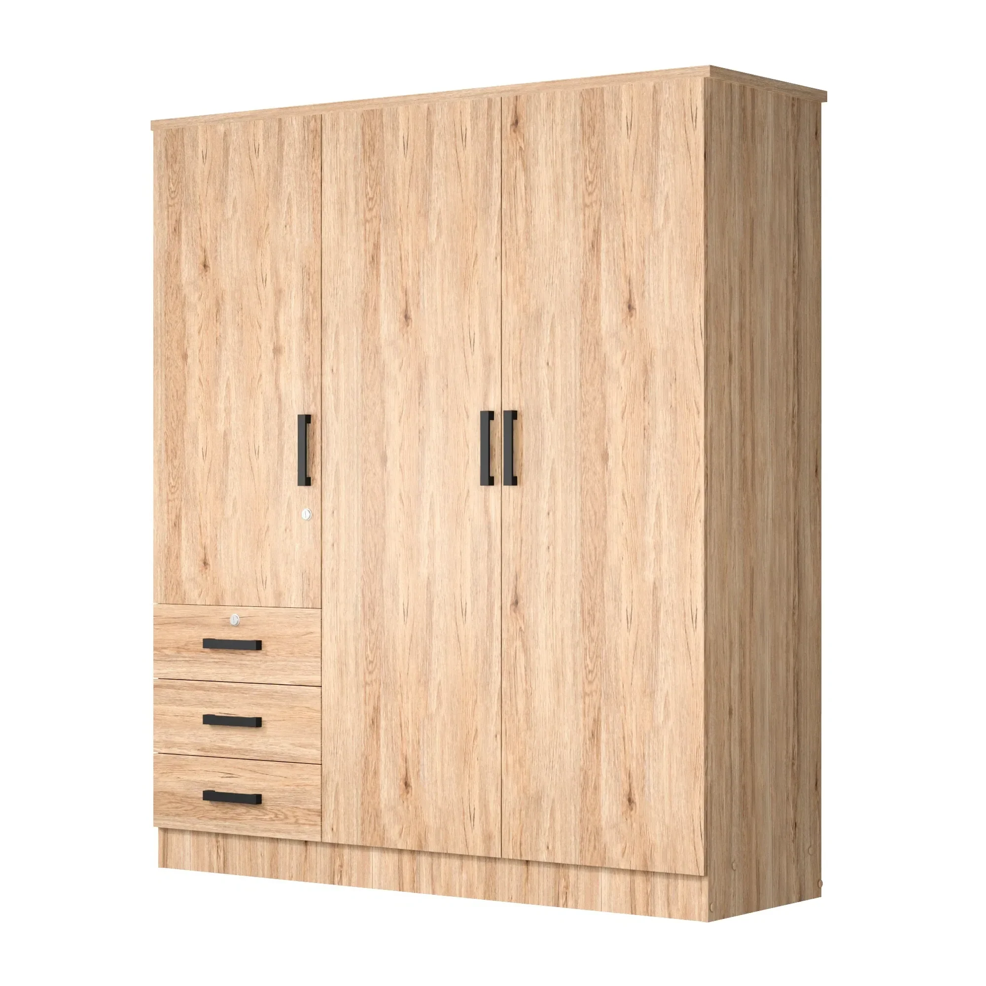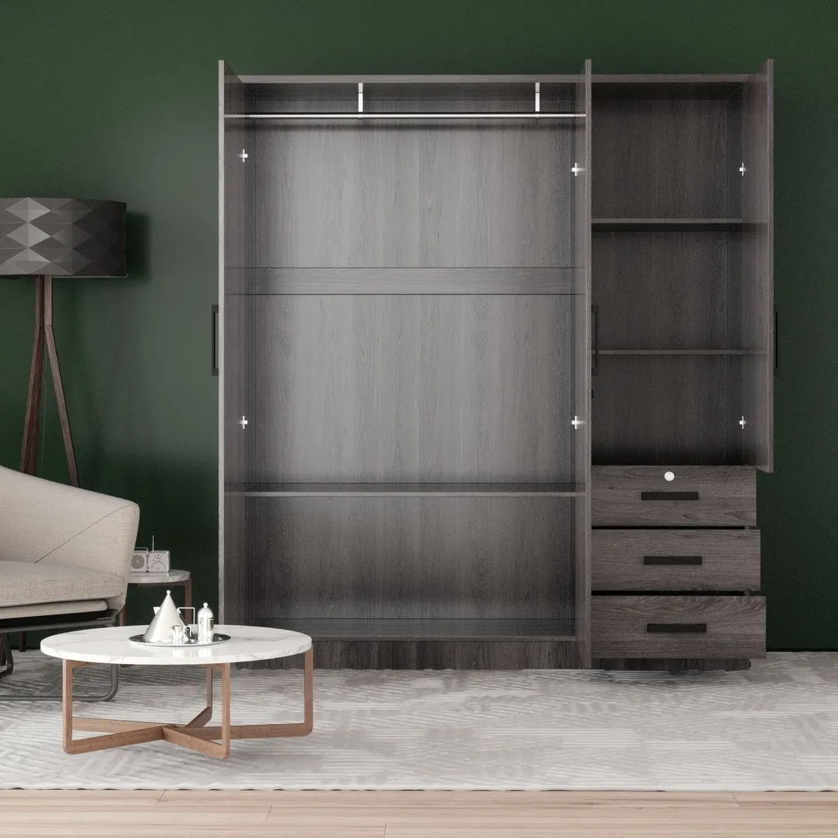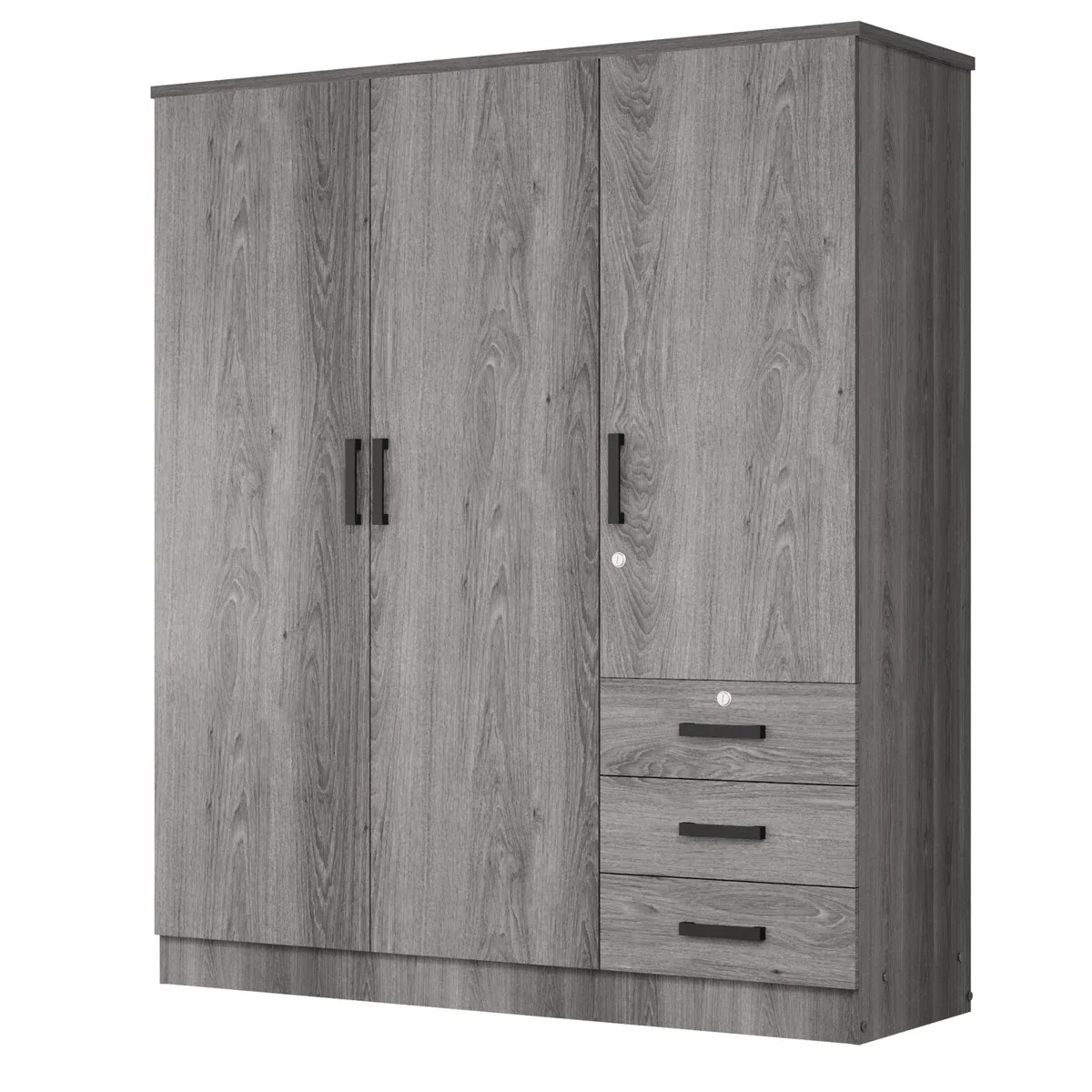 61″Wide 3-Door Wardrobe for Hanging With 3 Drawers & Shelves