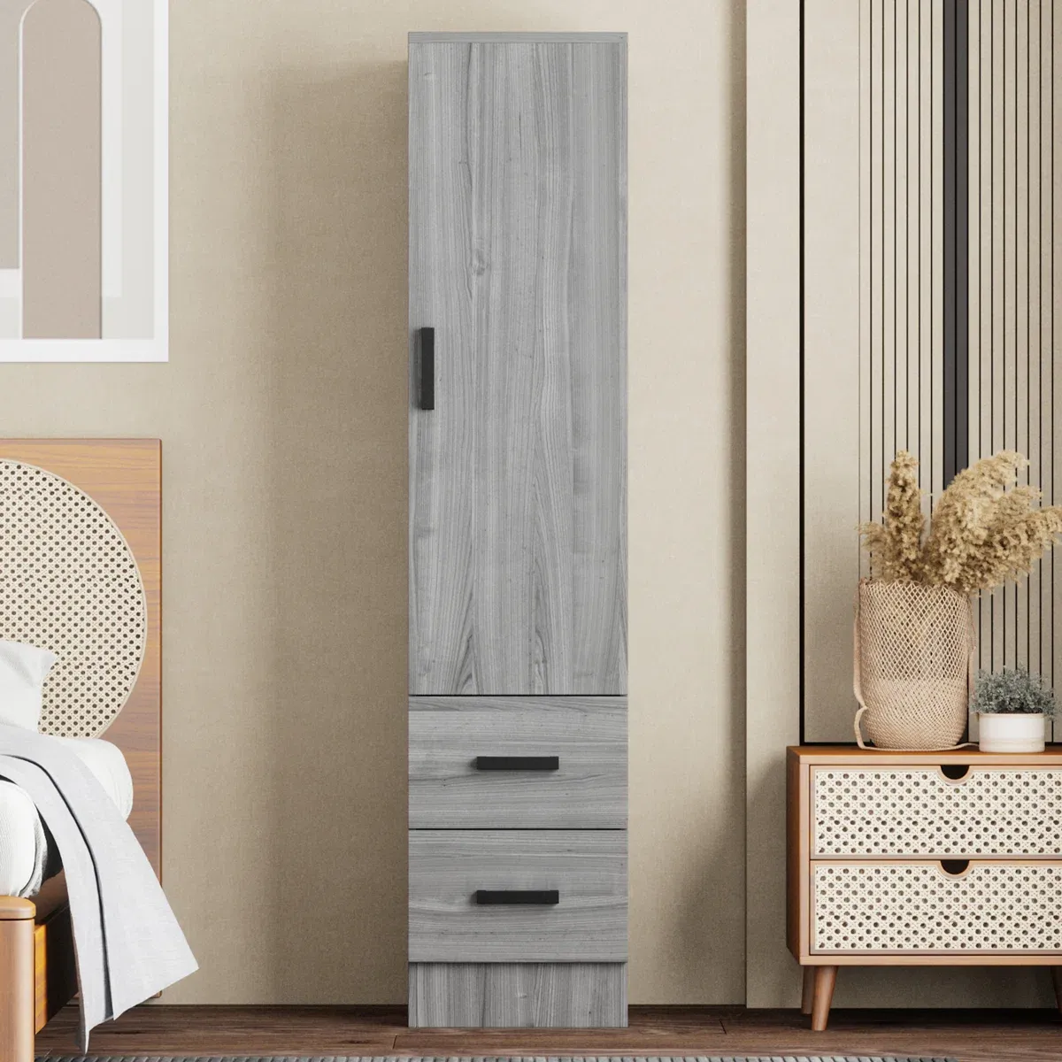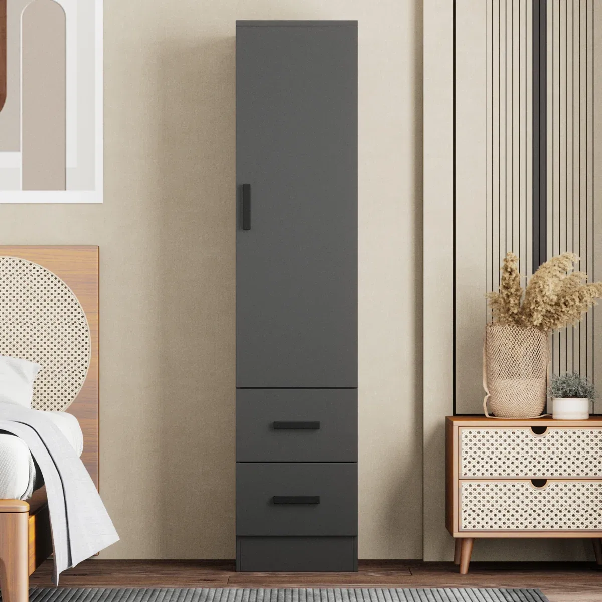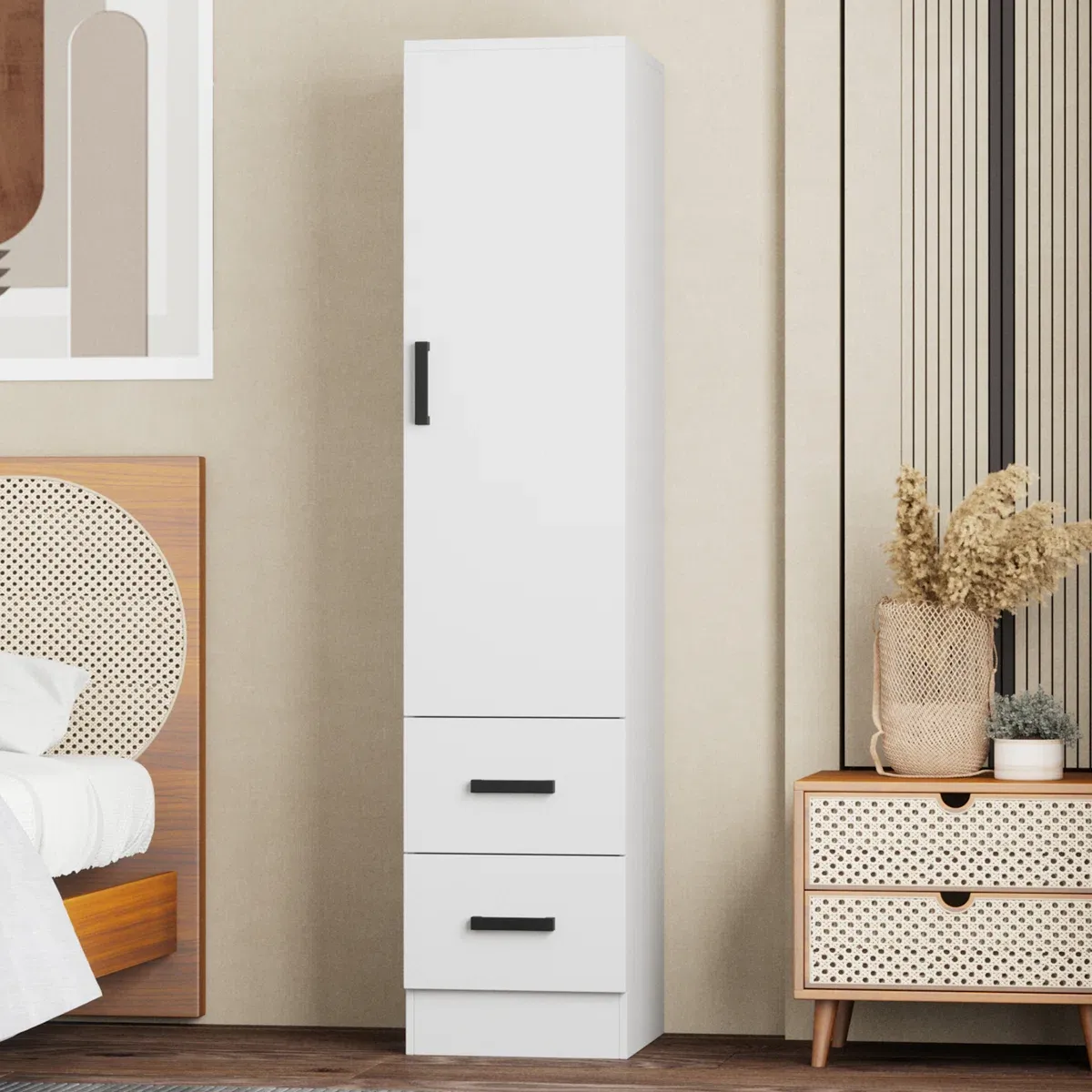 Single-Door Wardrobe With Shelves and 2 Drawers